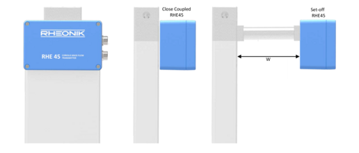 For RHM 30 to RHM 160 sensors, RHE45 is always installed set-off from the sensor body.