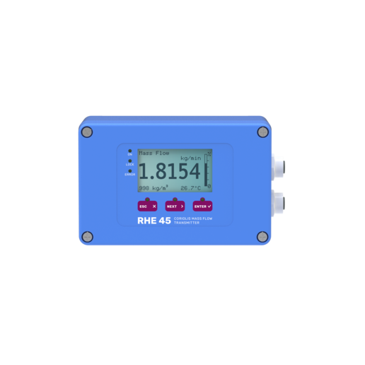 The RHE45 is an extremely compact Coriolis transmitter. The Rheonik AnyInterfaceCommitment provides a wide variety of communication options for seamless connection to control or SCADA systems. Options include Ethernet, Modbus, ProfiNet, EtherCat, PowerLink, Profibus, CAN and others.