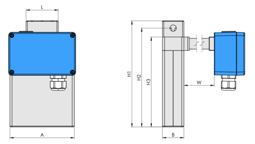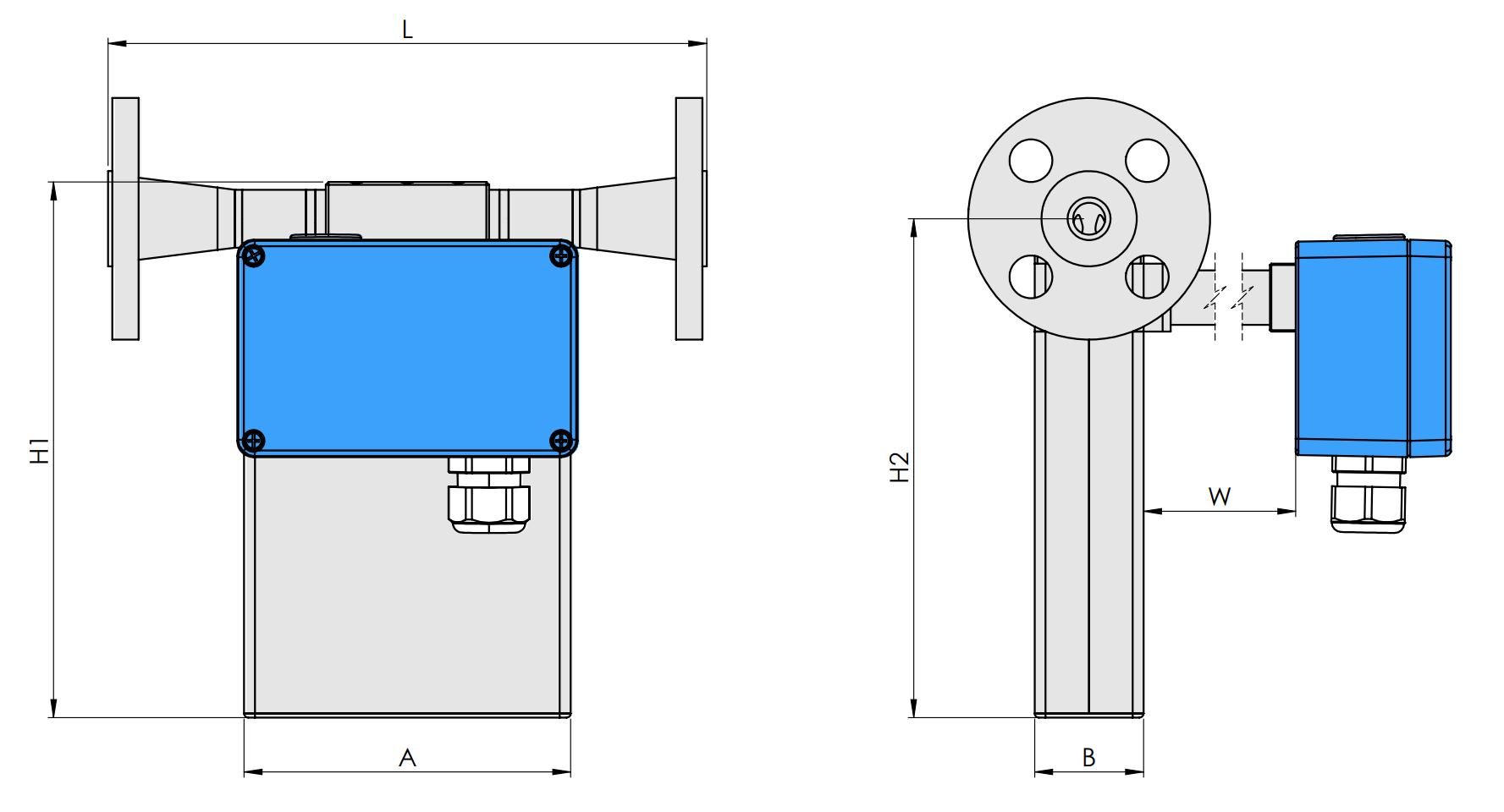 Optionally available: SS 316 box, size = 100 x 100 x 61 mm (3.94 x 3.94 x 2.40 in) – only with remote transmitter