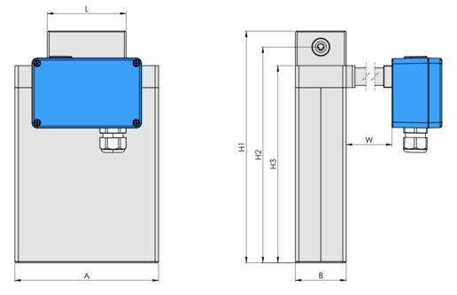 Optionally available: SS 316 box, size = 100 x 100 x 61 mm (3.94 x 3.94 x 2.40 in) – only with remote transmitter